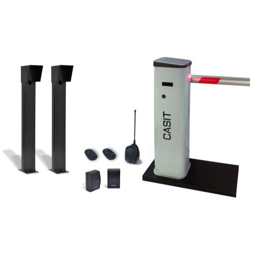 Road Barrier or Parking Barrier: electromechanical and automatic, irreversible, integrated, and wired control unit. Painted frame with cataphoresis.