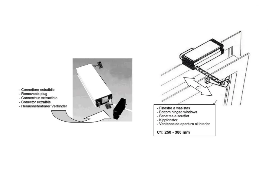 Add to wishlist Add to compareElectric opening and closing system designed for Wasistas (top-hinged) windows. Provides smooth, automated operation—ideal for high, large, or hard-to-reach windows in residential, commercial, and industrial spaces.