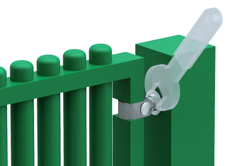 An adjustable hinge system allowing gate alignment correction and smooth swing operation.
