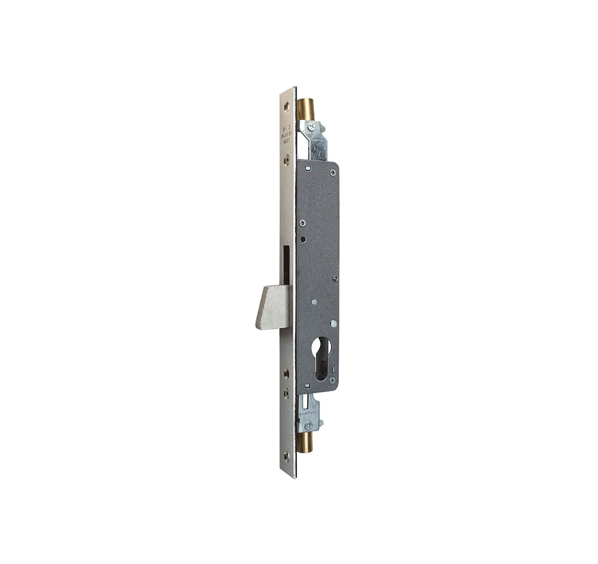 A three-point locking system operated by a cylinder key, providing secure closure for metal swing gates.